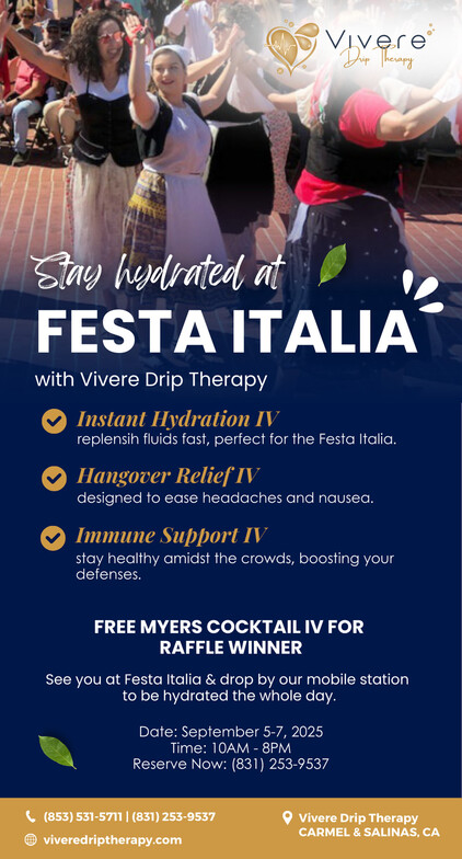 Every September, Festa Italia fills the air with the smell of garlic bread, Italian sausage, and of course — plenty of wine. It’s a weekend of music, family, and celebration here in Monterey. But let’s be honest… after a day (or two) of raising your glass, the morning after doesn’t always feel so festive.